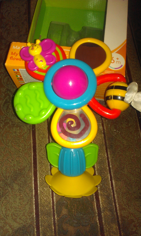 46)Цветок на присоске для детского столика. есть потертости краски на бабочке. Цена 150 руб. развивает моторику, шуршит, есть зеркальце, можно крутить, греметь. есть коробка. ПРОДАНО!![]()