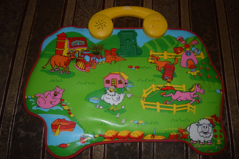 50) музыкальная игрушка Ферма " Мир детства" Цена 150 руб . при прикосновении машинкой животных они издают звуки. надо менять батерйки состояние хорошее