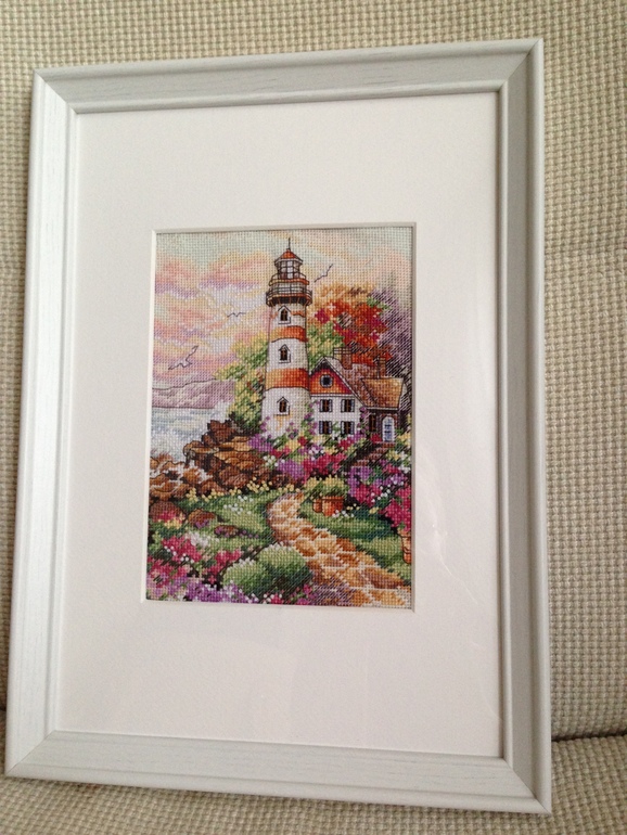 Закончила вышивать один из маяков от Дим. Размер 13х18. Оформлено в рамку из Икеи.