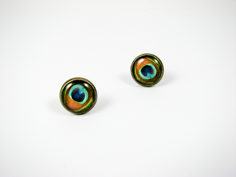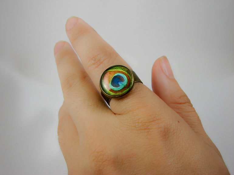 У меня новые украшения - гвоздики, висячие сережки и кольцо с павлиньем пером. Гвоздики гипоаллергенные, висячие сережки сделаны двусторонними, а кольцо может надеваться на любой палец.