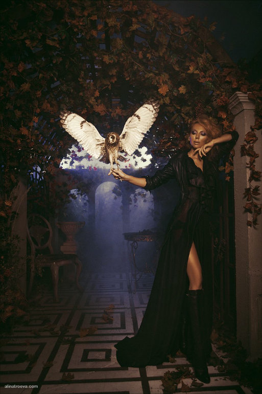 Ань, неужели сова живая?! Я сначала решила, что это реквизит, а потом смотрю — вроде по-разному у нее крылья раскрыты. Не интригуй — она живая?