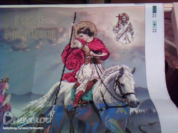 вот сейчас вышиваю икону Георгия Победоносца для своих мальчишек: