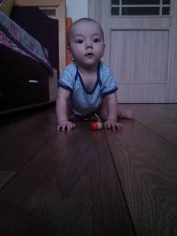 Ползает хорошо, садится почти полностью, сидит, одной ручкой опору держит, а другой хватает предметы разные :-) карабкается по игрушкам и встает на коленочки, по мне карабкается и на ножки встает. Конечно жевсе тянет в ротик, смотрю что б ниче мелкое на полу не валялось. Ползает иногда нормально, но потом плюх на живот и дальше ползет на животе.