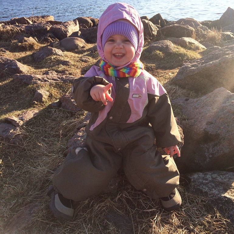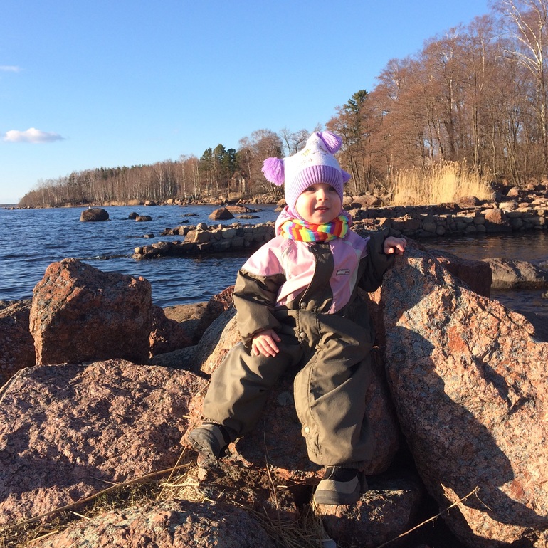 Элина очень любит залив! Просится смотреть море) эстет, блин))