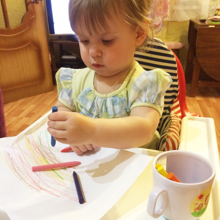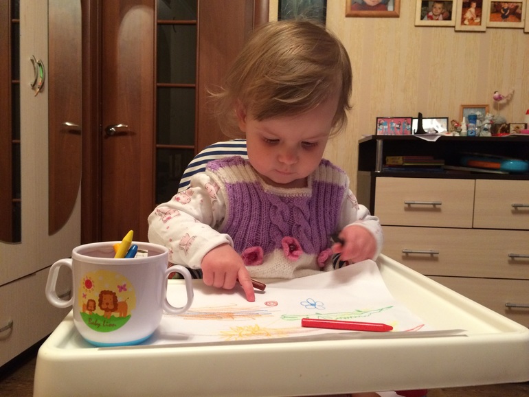 Не знаю, что нового у нас)) все понимает, все просьбы выполняет. Играет сама. Творчеством не очень любит заниматься, в основном хулиганит - бросает карандаши, тащит в рот пластелин и тд)) но иногда на нее нападает муза, и появляется желание творить))