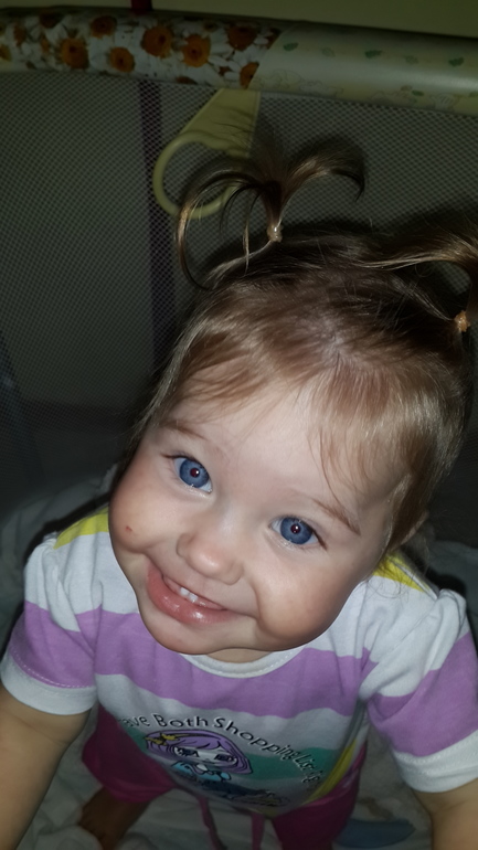 Вероничке 21 августа уже годик.Она большая умничка.Ласковая,нежная и любимая.Многое умеет,наверное и не перечислю все.Кушает все вподряд,борщи,супы,каши,овощи,фрукты.На блендере мелю редко что,т.к. мы любим жевать.Нравится ей кушать самой ,но потом вокруг нее мама дорогая что таорится.😨Она очень общительная девочка.Всем улыбается.Прохожие обращают на нее внимание,говорят ух какая улыбашка.Сама еще не ходит,хотя шаги уверенные.Очень любит целоваться.А,да...мы еще кушаем сисю.Хотела отлучить,но пока не выходит.Показывает что она хочет,машет головой да,нет😆Еще она у нас драчуха и кусака😈.Любит танцевать😎Любимая песня едем в соседнее село)))У нас 6 зубов,на подходе еще 2.И пару фоток нас