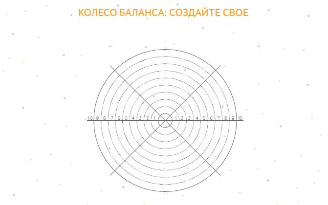 Теперь нужно оценить каждую сферу по 10-бальной шкале. Наглядно можно это сделать с помощью колеса баланса.
