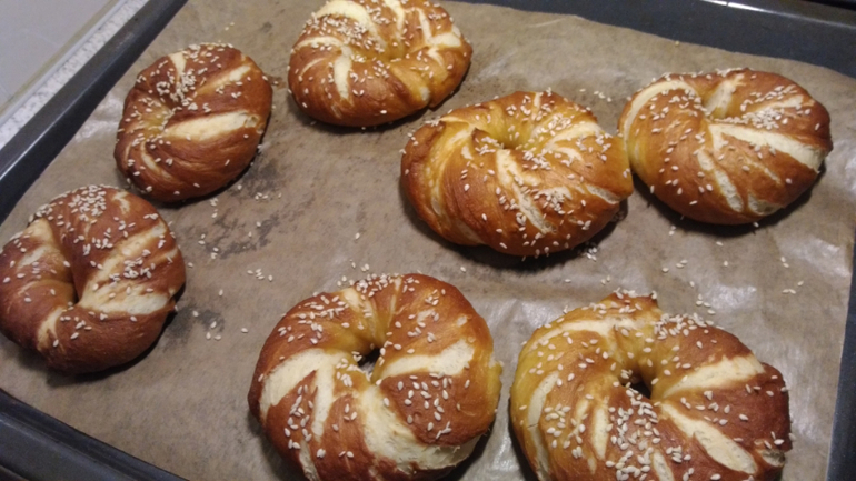 . Посыпать кунжутом и выпекать 30 минут при 180 градусах