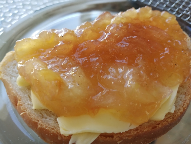 Уже подзабыл. Но помню взвешивал, сахар отмерял. Рецепт нашел на ютубе. Там сначала нужно плоды поставить на огонь и немного воды, чтобы сначала не подгорело. Потом когда они превратятся в массу, протер на друшлаге. Поставил на огонь насыпал сахар. С блинами на пробу всем понравилось.