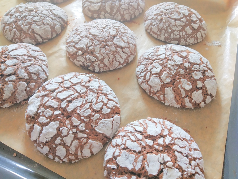 5. Ложкой набирать тесто и опускать в тарелку с сахарной пудрой. Хорошо обвалять и сформировать шарики