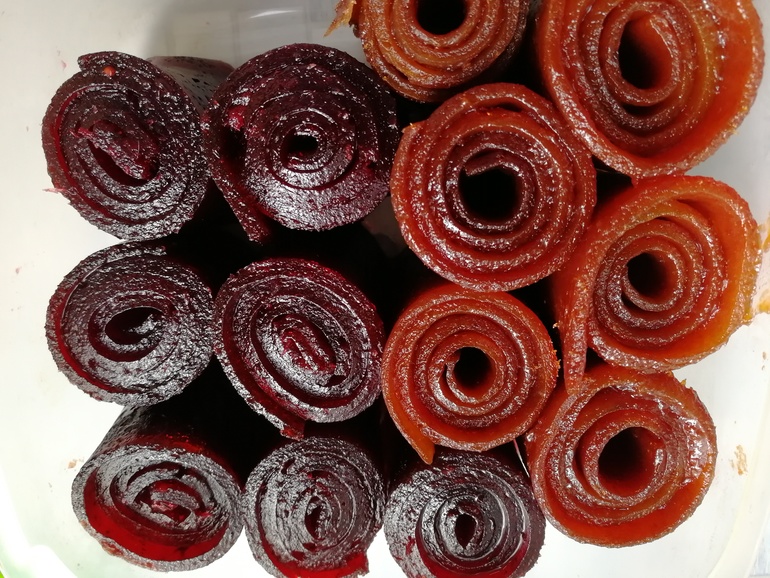 4. Накрутила пастилы. Из яблок, черники, красной смородины, желтой сливы, крыжовника со шпинатом.