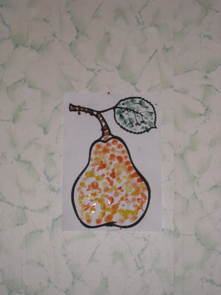 Сегодня с Катюшкой рисовали пальчиками. Получившаяся картинка нам так понравилась, что мы повесили её на стену. ))))))