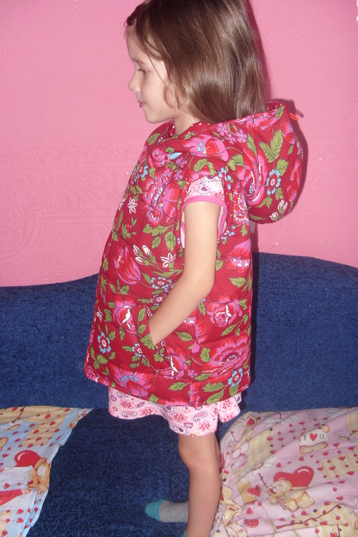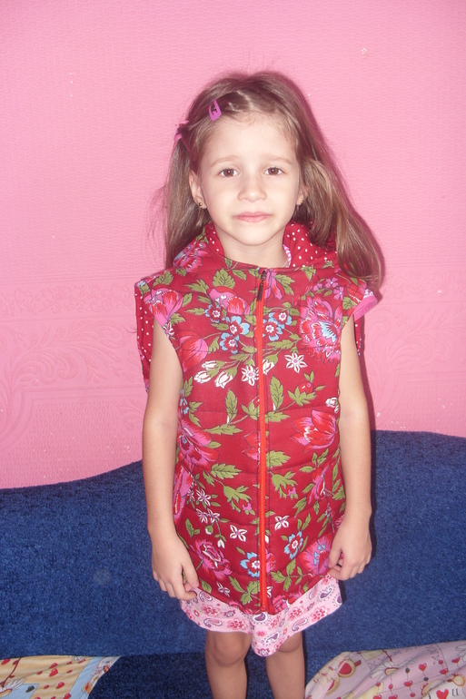 Каждый день захожу на ББ и жду от вас все новых и новых творений. Слежу за онлайн пошивом зимнего комбинезона, тоже хочется, но у меня пока очень мало опыта в шитье. К весне планирую сшить своим девочкам куртки, а вот сейчас потренировалась на жилетке. Ведь карманы ни разу не шила, ветрозащитную планку, стежку и утяжки тоже ни когда де делала, вот решила все это попробовать на жилетке. Выкройку взяла из Оттобре 2014/4 модель 33, размер 110. Прошу под кат.