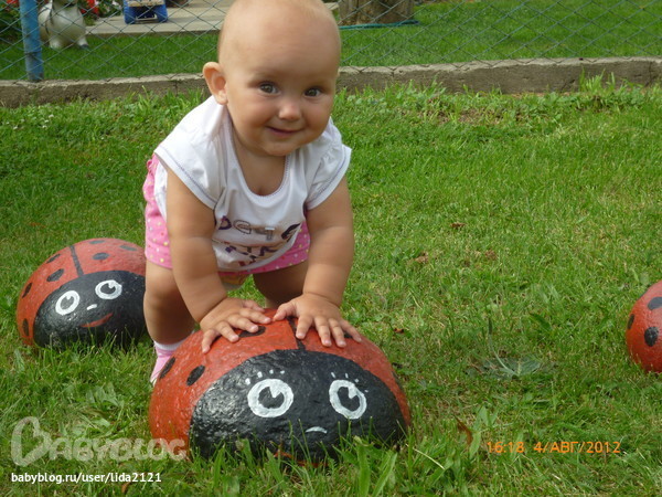 Педиатр ставит нам дефецит роста, так как мы всего 68 см, по моему нормальный рост! А, в остальном развивается как ураган я за ней просто не успеваю. Ходит за одну ручку свободно, стала отрывать ручки от опоры и может простоять несколько секунд. Имеем 6 зубов, 7 на подходе. Спит по прежнему с нами, переложить не реально будет бессоная ночь. Мы по прежнему еще кушаем сисю и раньше года от нее отказываться не планируем.