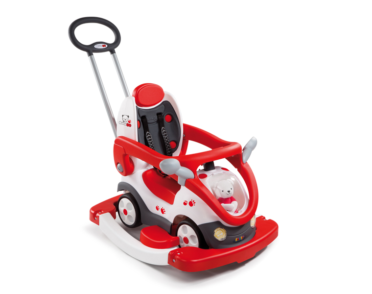 Многие малыши с завистью смотрят на папу за рулем большого автомобиля и мечтают «порулить», едва научились ходить. С автотренажером от Smoby исполнить эту мечту может любой! Суперреалистичное устройство, оснащенное рулем, педалями, переключателями зажигания и различными кнопочками, даст возможность маленькому гонщику почувствовать себя водителем настоящего спорткара. На рулевой панели расположен спидометр и табло навигации, по которому движется машинка.