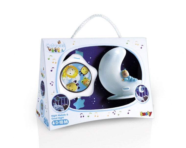 Подарочный набор Сotoons включает в себя музыкальную подвеску на кроватку и ночничок.
