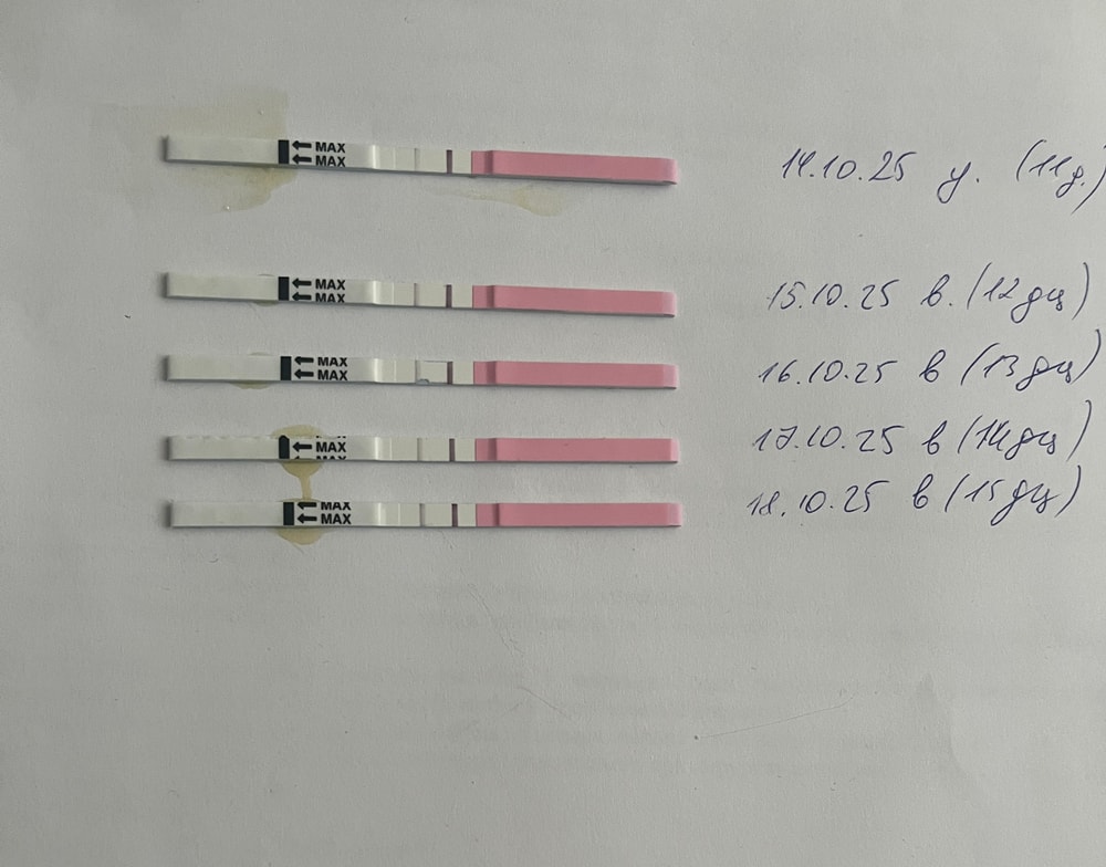 В этом цикле так же начала отслеживать овуляцию по тестам, еще и на узи пойду 20.11, думаю что должен уже будет лопнуть дф к этому времени. Хочу проверить была ли вообще овуляция. В прошлом цикле по тестам было, узи было до пика, па были, но вот 🤷♀️не осталось.