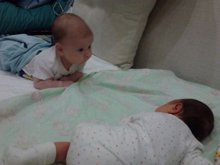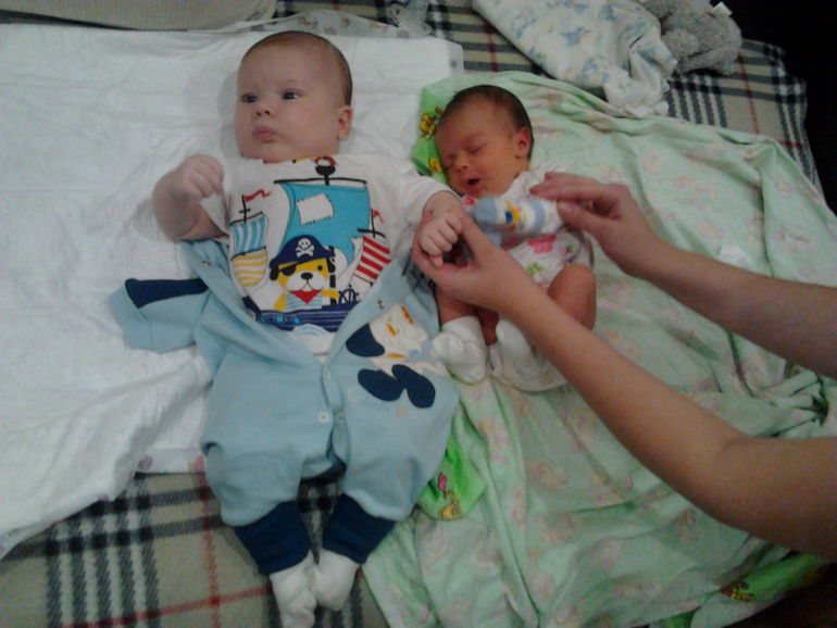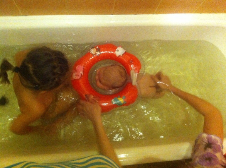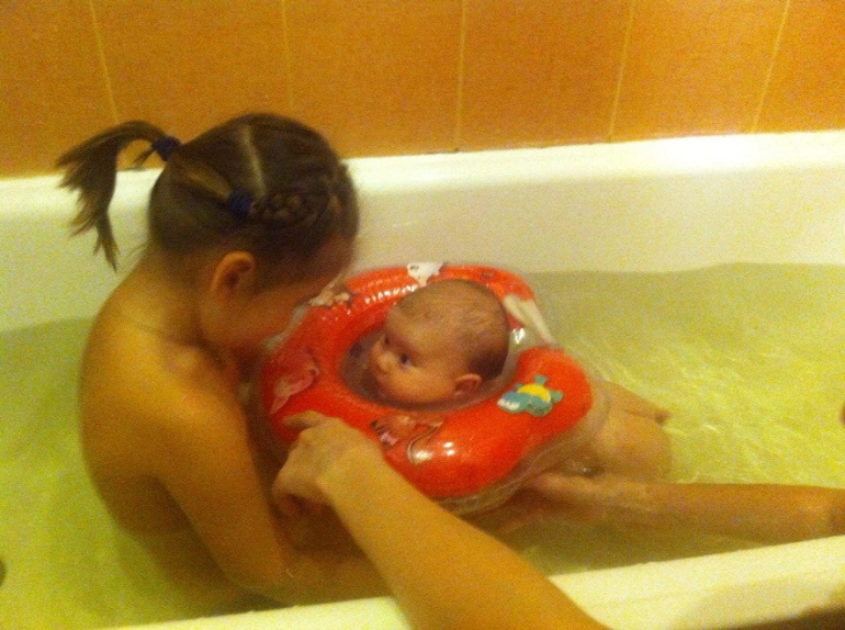 (Муж играет в танчики, это редко у него получается детей двое, поэтому очень редко. Время позднее. Я почти сплю с младшим. Рита все пытается на папу залезть мешает ему. В итоге лезет на шею, он ругает она обижается)