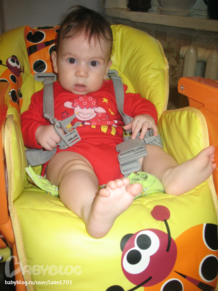 кушаем мы до сих пор только мамино молочко.хотя пробывали и пюрешки и каши-ничего мы не полюбили,видно рано еще!в 5 мес были 7.300.ползаем уже на четвереньках,гусеницей с 4,5мес.Колени в мазолях,но Рому это не сколько не смущает.Теперь вся его жизнь проходит,исключительно на четвереньках.Зубов у нас нет,хотя жду с 4 мес-белые полосочки я разглядела:)) Вои и гляжу на них уже полтора мес.Визжим, пищщим не меньще других.Просимся какать А-А-А,что очень приятно.Ночью кушаем каждые 3 часа.Пробывала водичкой обмануть-не прокатило.Да не больно я и старалась от ночных кормлений отучить.