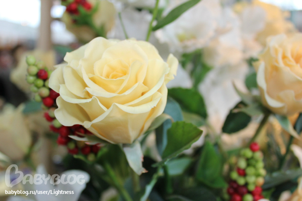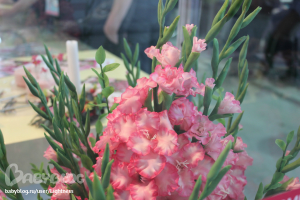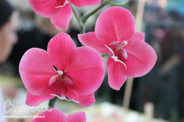 5. А вот что меня удивило больше всего - цветы из полимерной глины. Про полимерную глину я и раньше много слышала, но обычно из нее делают бусины и украшения, а тут - цветы! Они просто великолепные, как настоящие. Вот тут надо смореть не на мои щеки на переднем плане, а на букет сзади: