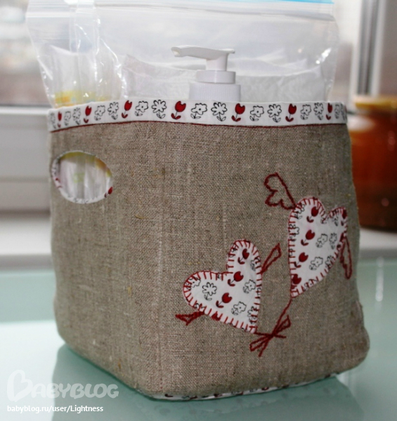 Вообще мне очень понравилось шить "емкости", вроде и полезно и интересно. Дальше хочу сделать себе летнюю сумку. Уже нашла несколько интересных мастре-классов в иностранных блогах.