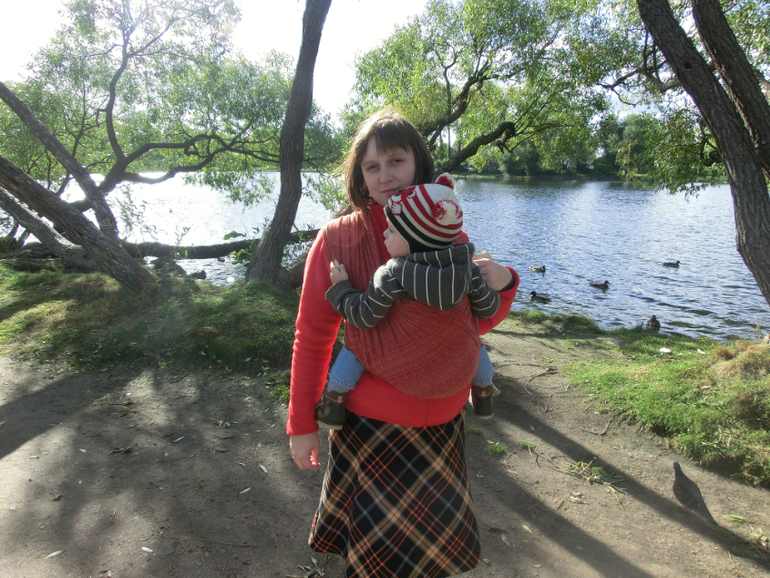 Поначалу шарфик показался мне скользким, но как оказалось, держит он замечательно. Мы как всегда гулялись долго и моя спина ничего не сказала (по-моему, она у меня вообще молчаливая))). Дальше фото)