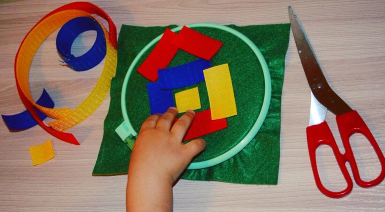 По пол метра каждого цвета липучки, пяльцы и фетр (но лучше всего подойдёт махровое полотенчико или что то ворсистое) На все про все - 170р👛 Развивает мелкую моторику, фантазию и цветовосприятие🙌