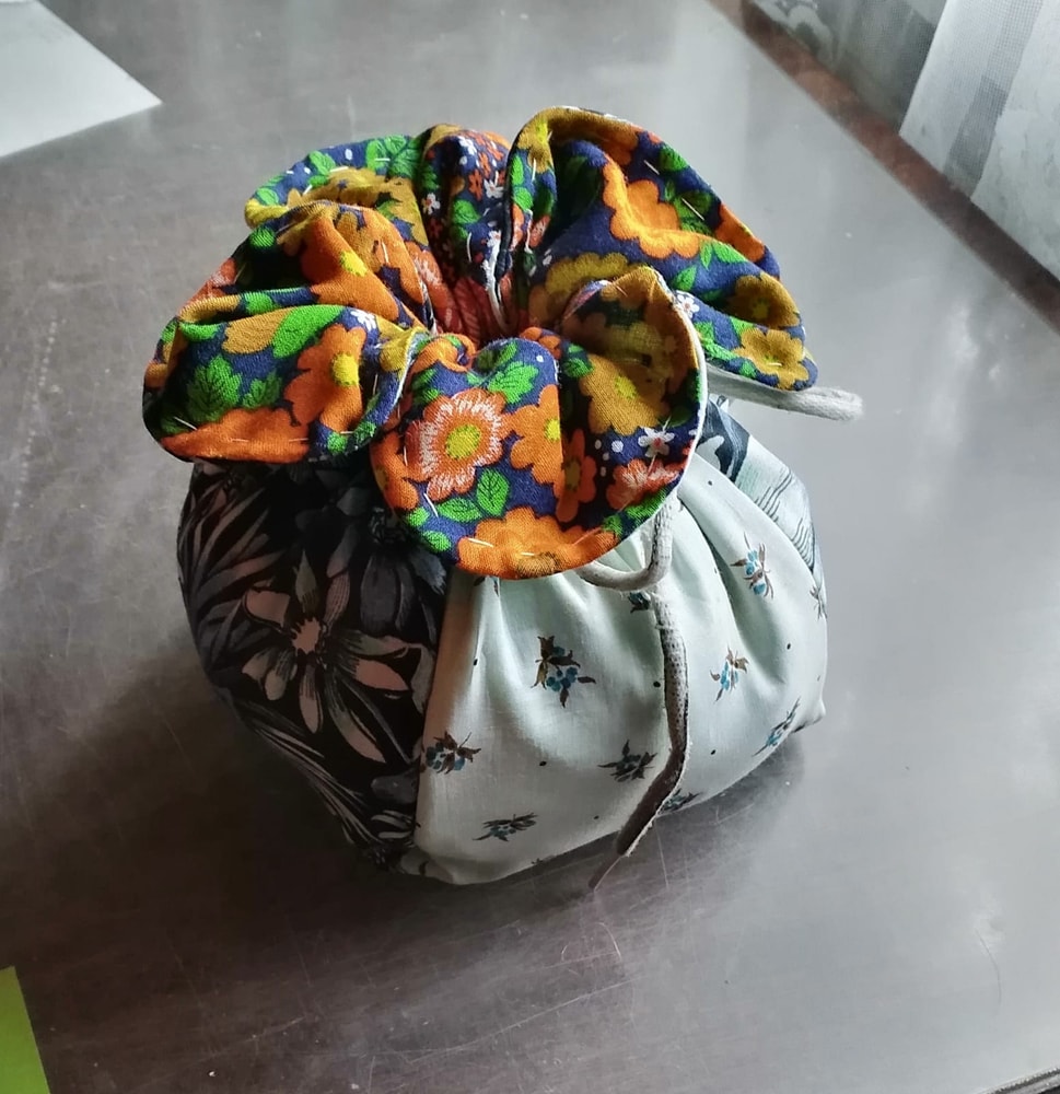 Добрый день! Я сделала 2 мешочка-цветочка. Размеры в ролике были не указаны, поэтому сшила один побольше, другой- поменьше