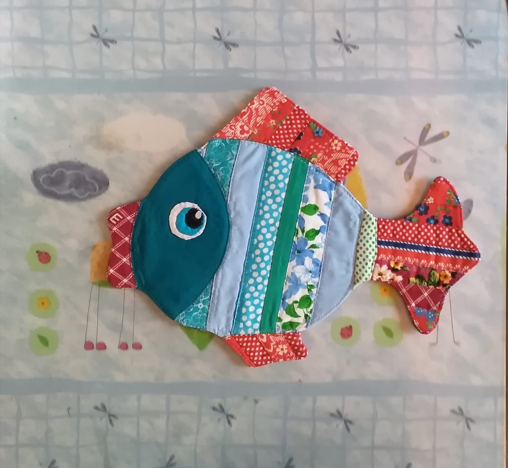 Сшила из узких полосочек текстильную салфетку "Рыбка".