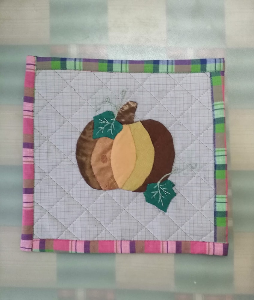 У меня скромненько- салфетка "Тыква" и прихватка "Котик".