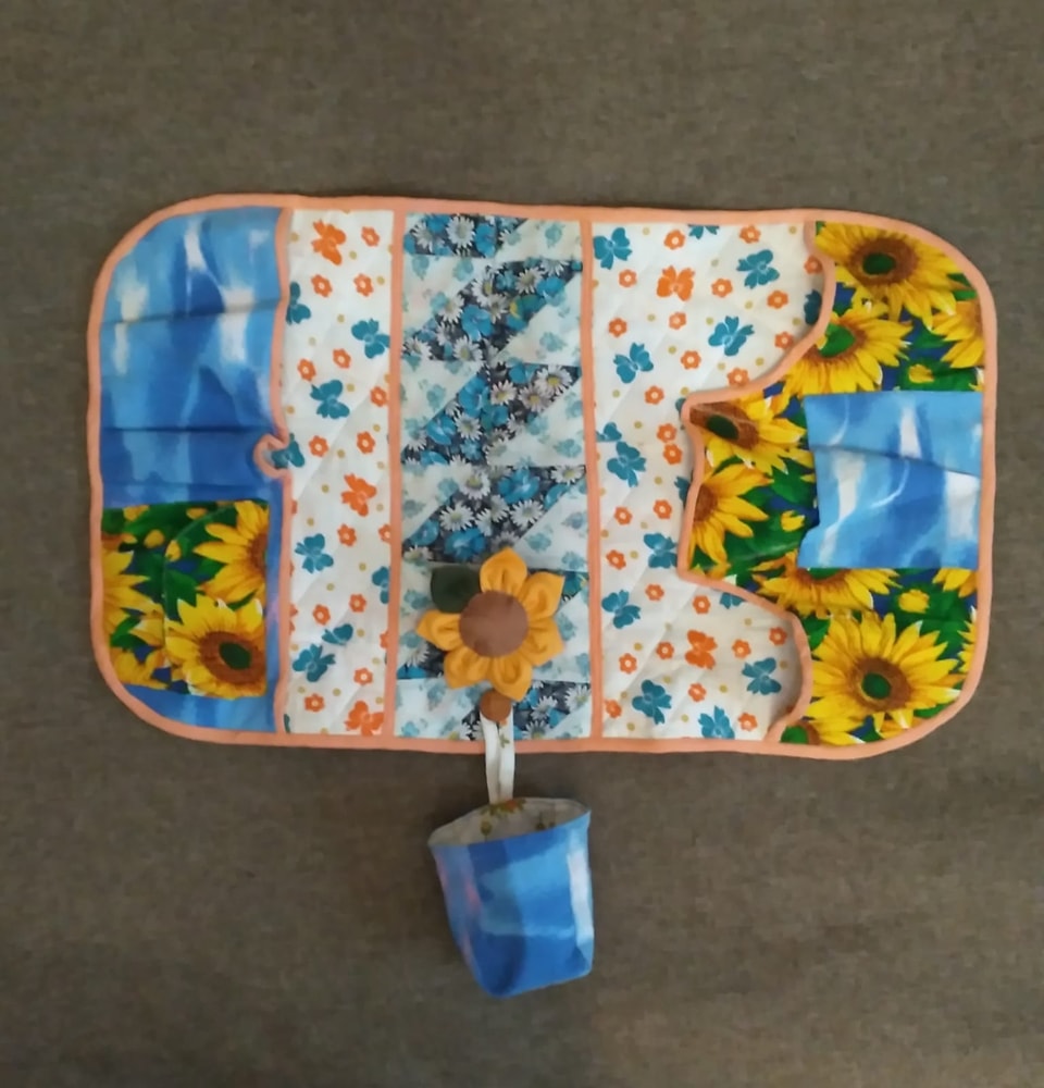 Сшила органайзер на кресло. Очень удобно, все под рукой! Много кармашков и корзиночка для мусора.