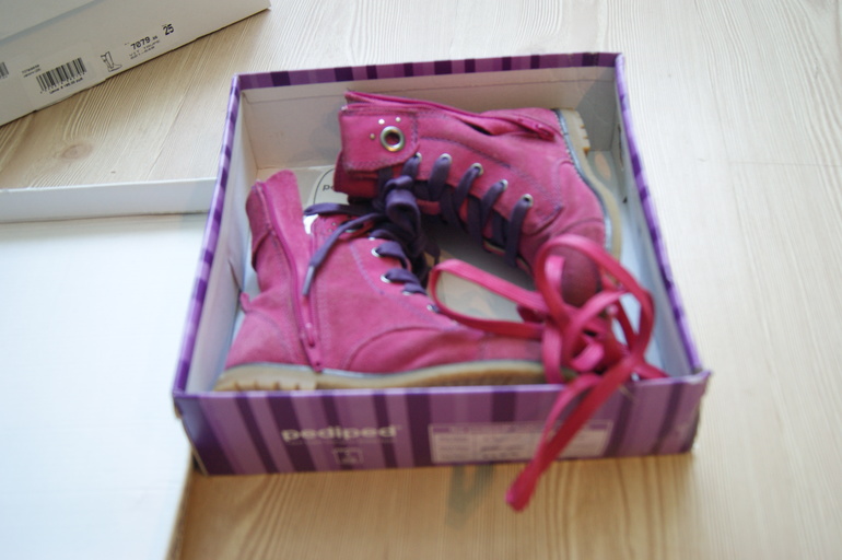 7. проданы.Pediped замша цвета фуксия на утепленной ткани. В комплекте сиреневые и новые фуксия шнурки-бомба! оживят любой осенне-весенний лук до уровня "звезда", размер 26. Состояние 4+