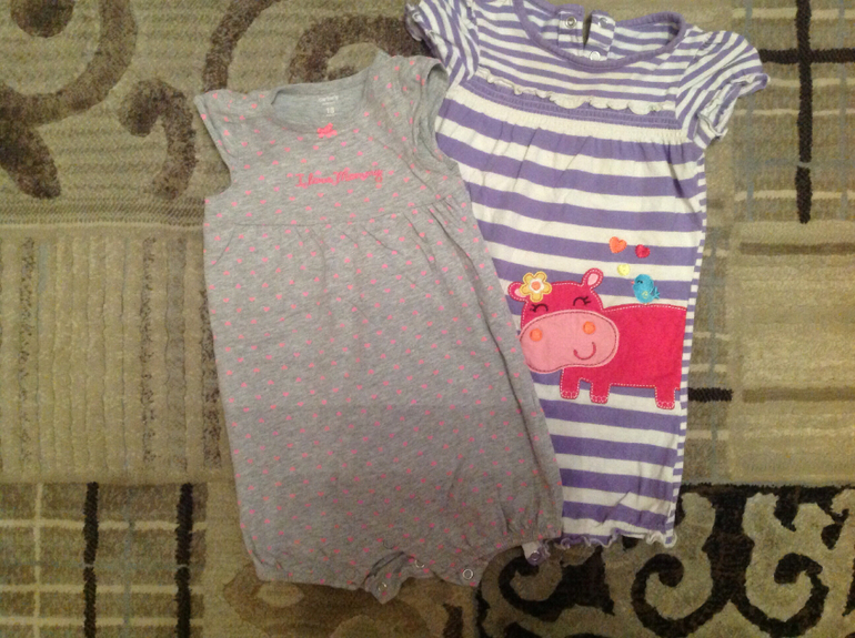 6. Картерс розовый новый- 250, полосатый б/у-150 р 9 мес