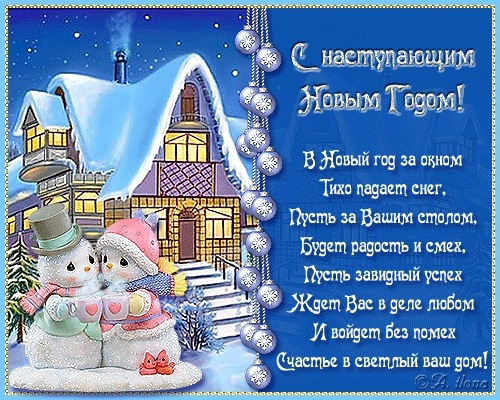 От всей души поздравляю вас, дорогие мои друзья с наступающим Новым Годом! Крепкого вам и вашим близким здоровья, огромного счастья и всех благ, семейного уюта и теплых вечеров с родными и близкими вам людьми!