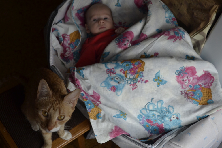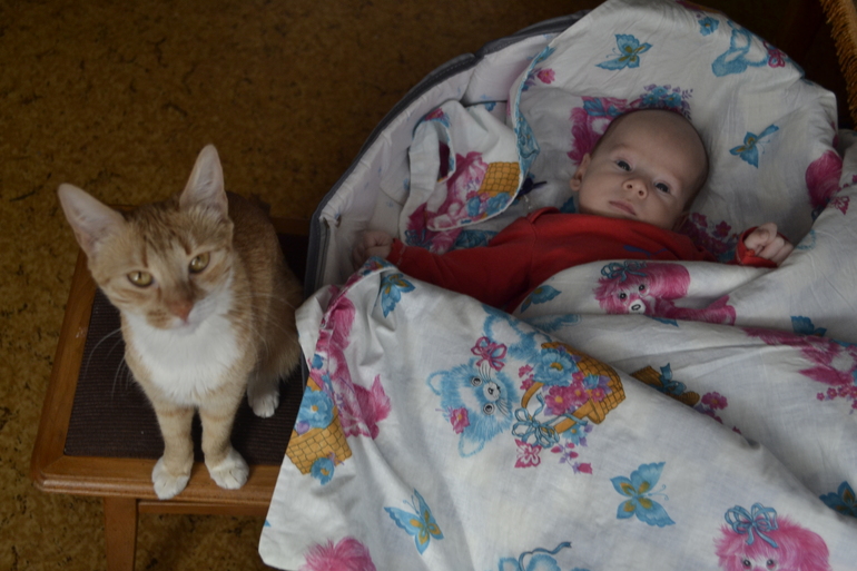 Артур, кстати, начал временами замечать Элис и даже немного наблюдать за ней. А Элли, в свою очередь, почти перестала бояться малышика. Теперь, когда Артур начинает кричать или ворчать, она сначала бежит в его сторону, потом будто понимает, что ничего не сможет сделать и срочно бежит за мной. Весело за ней наблюдать в такие моменты. :)