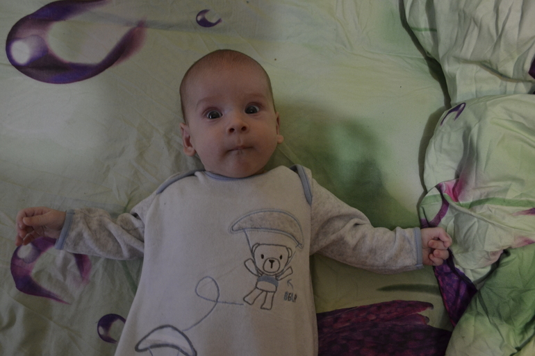 7. Пытается смеяться. Но, я думаю, он просто не знает, как это и что это. :) Мы с Владом редко смеемся.