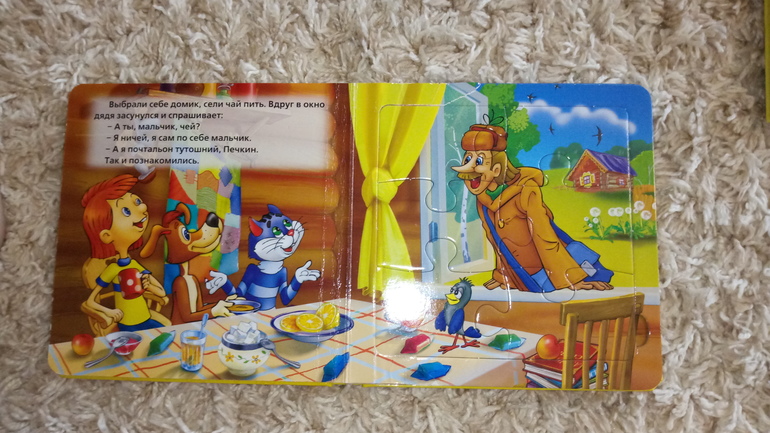 Книжка с пазлом. Вообще идеально когда ребенок умеет собирать пазл. Но взяла так как была хорошая иллюстрация (да и по акции попалась 😀).