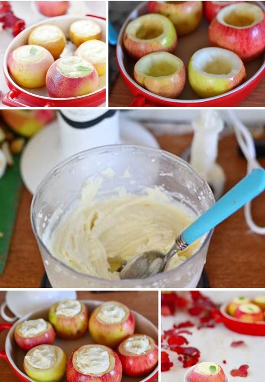 3. Яблоки выкладываем в форму для запекания, смазанную сливочным маслом. Плотно наполняем яблоки творожной начинкой.