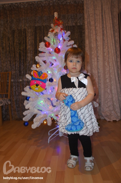 Это Полечка, подарки появились под елкой позже. Утром пару коробок Поля обнаружила и понесла папе со словами "откоям" (открой).