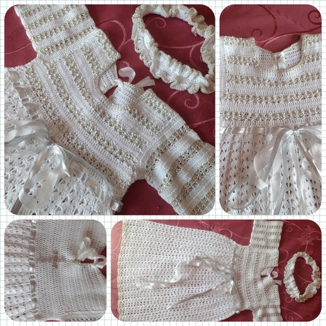 Вот он, результат моих ночных упорных стараний. Вроде неплохо получилось. Милу скоро крестить, надеюсь, влезет в него. Хотя я даже на Полю смогла одеть.