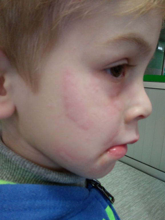 Только лицо и кисти.целый день в саду.то появится то пропадет.вечером позвонили и сказали.не знаю на что.зиртек пока не дала.сходит само.хочу сама посмотреть если еще отекет.похоже на крапивницу.