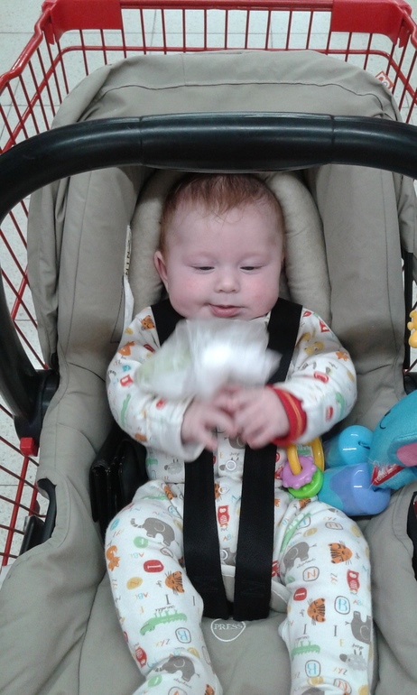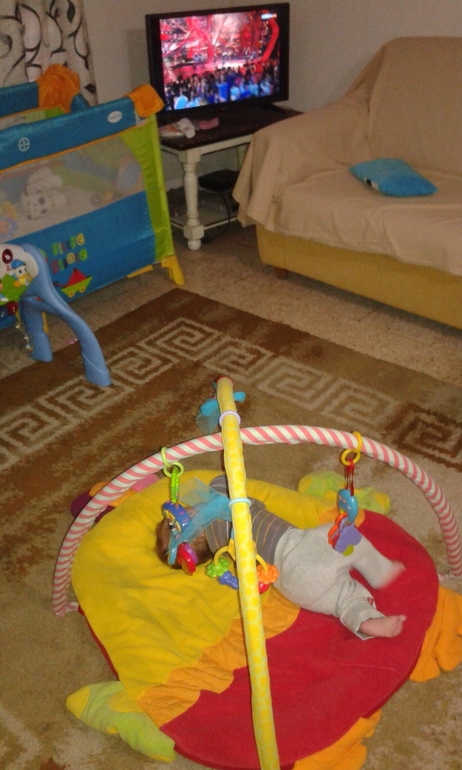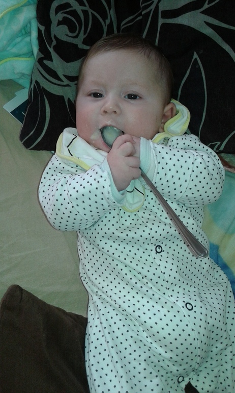 Вау.как во сне пролетело время.до сих пор жизнь наша не устаканилась.что то никак.итак сходили за анализами в госпиталь.ничего внятного не услышала от врача.ёлки-палки.анализ на аллергию подожительный.19 единиц(не знаю каких),до 7 считается отрицательный.причём на пищевую группу,на которую мы сдавали,все значения отрицательные.а аллерген есть.эх,зря не проверили на пыльцу и в принципе на контактную аллергию.у нас опять пыльная буря из Сирии.что то этой зимой много нас обсыпало сирийской пылью.может и от неё?но никаких пневмологических проявлений нет.вообщем с аллергией так и не разобрались.дали нам пробники крема,шампуня-очередную марку с заверением что это нам поможет.дали банку нашей смеси.спросила за витД,и тут же пузырёк оказался у меня в руках.прикольненько сходила.сказали продолжить лактобактерии.и по ходу зубы пошли.дёсна ещё не припухли,но движение зубов уже началось:слюни рекой,руки во рту и психи.вес -рост узнаем в пятницу на прививке.а,ещё заехала в Джамбо:слюнявчики неделька и ложка.всё ,кабачок,ты попал!я тебя съем!