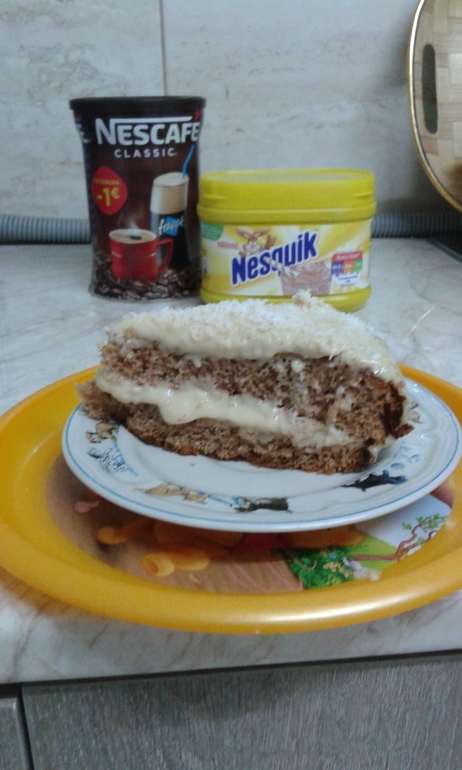 Весы утром дали добро на тортик.хотя мне можно тонну съесть и ничего не будет.за полчаса приготовила тесто.пока корж пёкся,сварила крем и поставила варить сгущёнку.я крем такой люблю:заварной+вар сгущёнка.вообще я не кулинар.но этот рецепт освоила на ура.ещё типа купила листья малины сегодня в пакетиках.открыла дома:пахнет не как листья.посмотрела состав.а там только 50%листья и ещё всякой хрени.блин,облом,ведь купила в органик магазине.в такие листья не верю.ладно.посмотрим.купила вчера пряжу.недавно завезли новую,такую мягкую.плед будет таким тёплым и мягким.и не будет раздражать кожу малыша.как закончу покажу.пока треть готова.ну вот и фото тортика.рецепт для ленивых и не супер хозяек(таких как я):1 банка сгущёнки,2 яйца,1ст муки и гаш сода.я выпекаю в разъёмной форме на перг бумаге.потом ниткой режу и перемазываю кремом.сегодня доавила немного какао в тесто.
