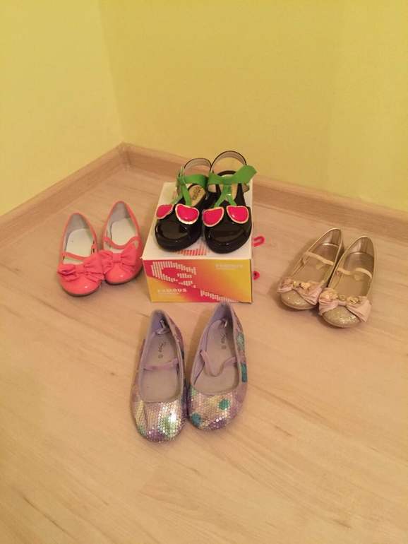розовые и золотые балетки одевали 2 раза, сандали и вовсе новые с коробкой, блестящие тоже одевали только дома.