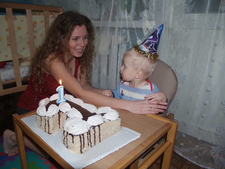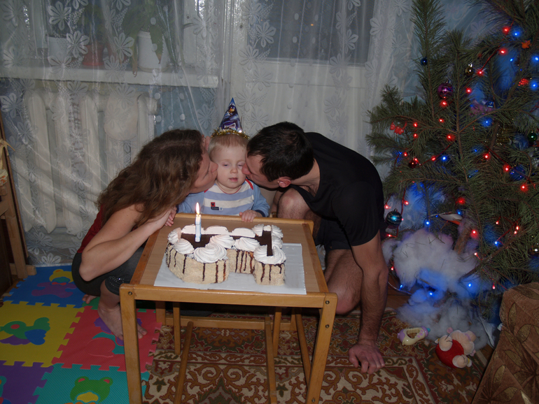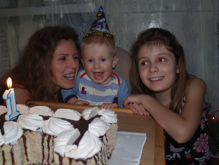 Наш годик мы отметили 31.01, т.к. 24.01 мы были еще в больнице. К нам должны были прийти крестные 24.01, они были в Харькове в это время. К сожалению, не сложилось, поэтому они просто передали подарки и уехали. День рождения отметили в семейном кругу.