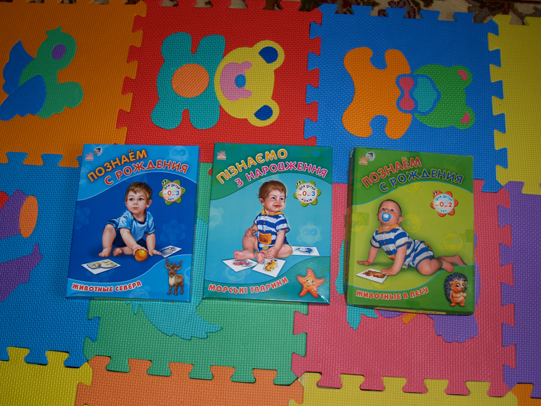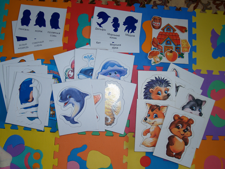Крестные подарили нам на годик игры, в одну из них мы уже начали играть. На первом этапе нужно развешать картинки животных по дому и каждый день показывать, рассказывать, что это за животное, описывать его. И вот, первый этап мы уже освоили) Спрашиваю Маркусю "Где пингвин?" или "Где морж?" и Маркуся ползет туда, где висит конкретное животное и показывает взглядом (пальцем не показываем). Или спрашиваю "У кого белая шубка и пушистый хвост?", но с подобными вопросами иногда ошибается, правильно получается через раз.