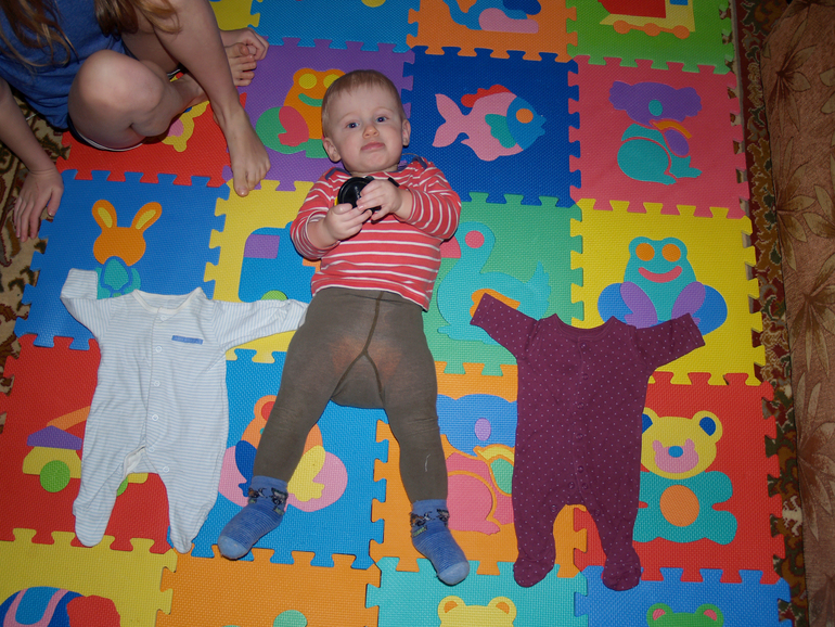 Перебирала маленькие вещи и нашла слипы 56 размера, которые Маркуся в роддоме носил. Было очень интересно сравнить))