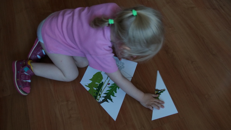 Разложили последовательность: цикл жизни одуванчика. Аня ее раскладывает сама, попутно комментирует.