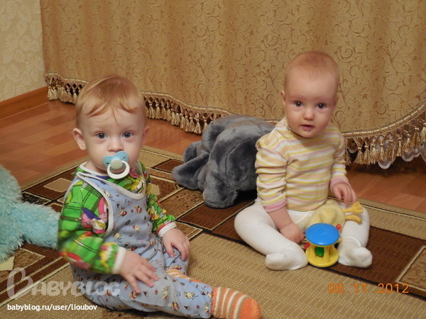сегодня в гостях у друзей, наша лысик справа, слева Кирюшка, 11 месяцев
