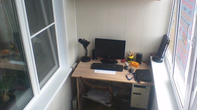 Мой БАЛКОН))) Энергосберегающее остекление спасает от жары, теплый пол, освещение, розетка) КАБИНЕТ)))